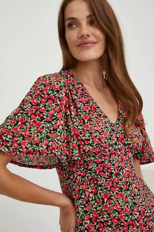 Ελαφρύ φόρεμα από τη συλλογή Answear Lab. Ανοιχτό μοντέλο από από ύφασμα με σχέδια.