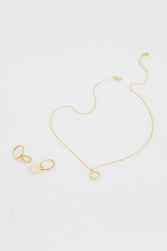Κολιέ και σκουλαρίκια από τη συλλογή Answear Lab. Το μοντέλο με διακοσμητικό στοιχείο, κατασκευασμένο από ασήμι 925, επικαλυμμένο με χρυσό 18 καρατίων.